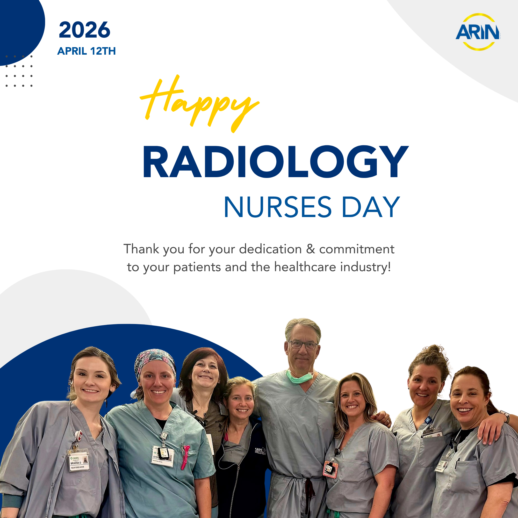 Join ARIN in celebrating the 2026 Radiological and Imaging Nurses Day! Help us celebrate your Team with us by submitting your photos HERE until April 2, 2026.