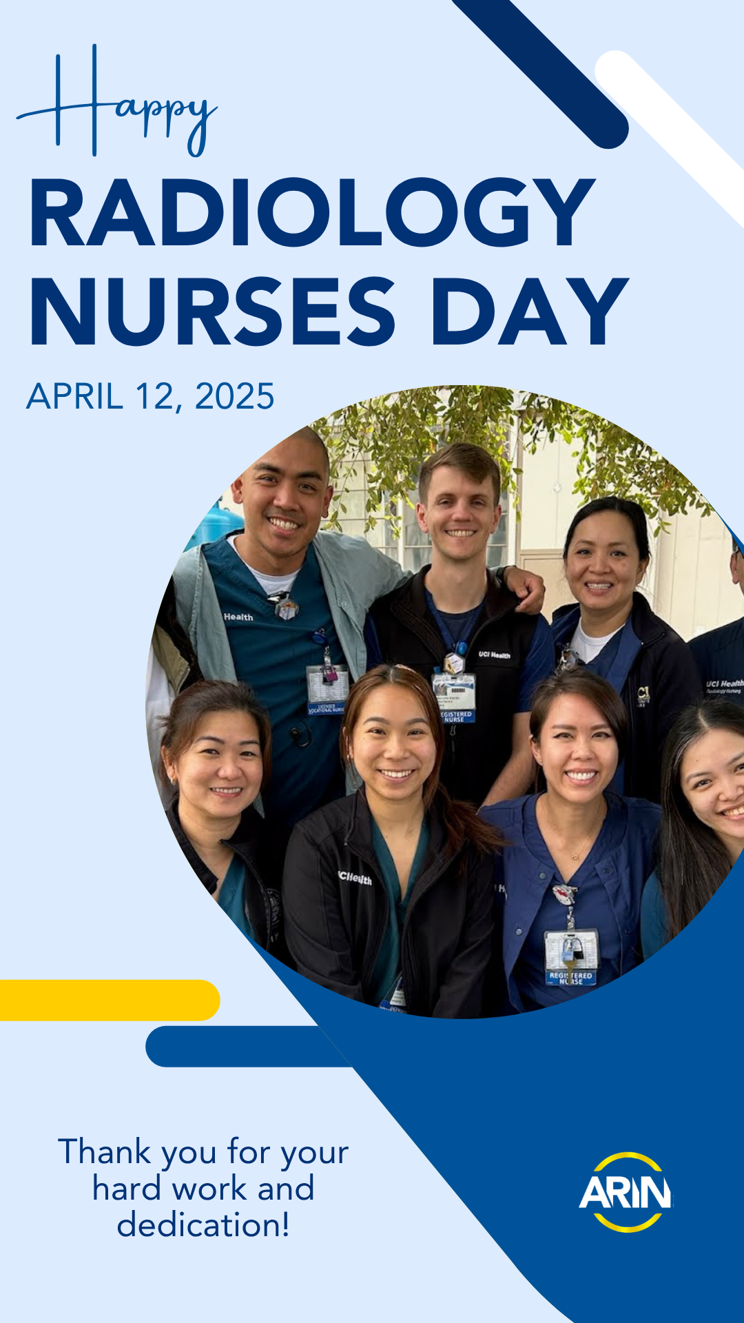 The Association of Radiology and Imaging Nurses International organization is celebrating Radiology Nurses Day on April 12, 2026, to recognize and honor the care radiology nurses provide to our patients each day.